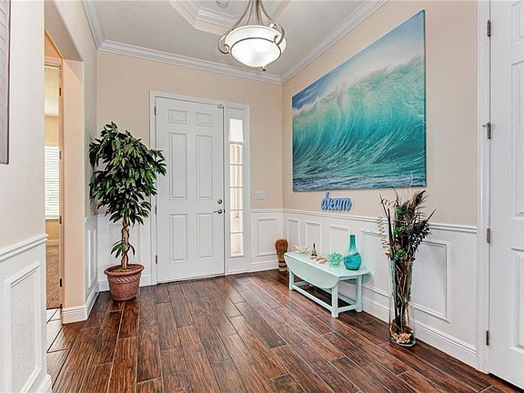 Looking for breathtaking lake views on a half acre lot?The"Hawthorne"floor plan sits on a pristine lot loaded w/ upgrades.Entering the home a long view to the lake immediately sets you at ease.1st bedroom & full bath w/tub are in the front of the house,oversized 3 gar garage w/utility tub & whole house water softener,Extra large laundry room,w/ cabinets & large storage room for all your extras.2nd bedroom off the living room has private bath & large closet,French doors lead to the den which could also be a hobby room or addtl. bedroom when needed,Master Suite faces the lake & has 2 WIC, spa like bathroom w/ dual sinks,soaker tub,linen closet & lg walk in shower.The kitchen/dining room/living room are all open, spacious & filled w/ natural light & views of the lake.Kitchen boasts 42"cabinets,SS Appliances,farm house sink,large island for food prep w/ seating,induction cooktop,convection oven & large pantry.The living room sliders open up to an extended lanai to enjoy time in breezy comfort.A 1/2 bath completes the perfect set up for a future pool & outdoor kitchen.This amazing home is located in the tranquil community of Rye Wilderness which is known for year round enjoyment of a variety of birds & wildlife.The enormous curb appeal of this home is undeniable w/ the tile roof,paver driveways & impressive entrance.Inside-granite counters throughout,porcelain tile throughout w/ carpet in the bedrooms.RING doorbell system, whole house Culligan water softener&reverse osmosis filtration system under kitchen sink