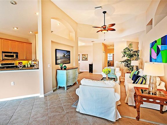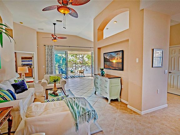 Enter the great room with a cathedral ceiling and immediately enjoy a great southern view over hole #2 and the adjoining aquatic bird lake in Audubon Certified Crown Colony. The kitchen has granite countertops, stainless appliances and 42" maple wood cabinets. There is a separate formal dining area, and hallway guest br, plus a 2nd guest bedroom, better described as a bonus room for its size and multi-use flexibility as a br, video room and/or office. Diagonal tile in all living areas, and on the screened lanai. Master bath has dual sinks, soaking tub and separate shower walls. The Lenox a/c keeps the home comfortable when the double sliders to the screened lanai are closed. Laundry room with W/D. Attached garage with the newly installed paver brick driveway and sidewalk to the front door. Low condo fees of $1,692 quarterly include 24x7 attended, gated & attended access, pool, well-equipped fitness center, 4 Har-Tru tennis courts. The fee also includes Comcast fiber optic HD and DVR for 2 TVs plus high-speed internet ($600 per qtr retail value). Membership in the fabulous Crown Colony Golf & Country Club is totally optional, with social or new discounted equity golf available.