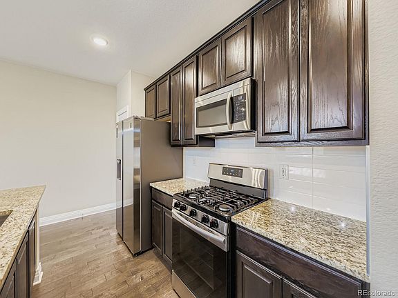 Enjoy the convenience of an oversized two-car garage providing ample storage and parking. Ideally located with easy access to E-470, you’re just minutes from DIA and shopping. This home combines style, functionality, and an unbeatable location — perfect for anyone looking for low-maintenance living in a vibrant community.