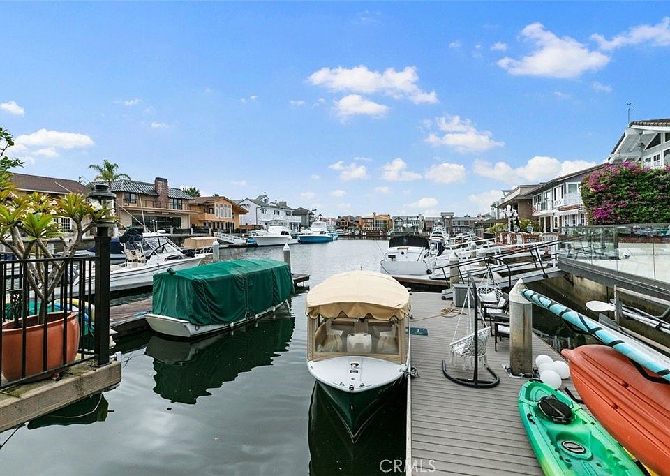 From the moment you enter this charming waterfront home, you leave the outside world and bask in the heavenly oasis that is Huntington Harbor. This bayfront opportunity offers over 1,800 sq. ft. of quality living space with an expansive view of the coveted Huntington Harbor. Complete with new plush white carpeting, fresh paint, and black hardware and lighting fixture updates throughout, the home is light and airy in nature with midcentury modern appeal. Through the double doors you are immediately greeted with the perfect outdoor courtyard space for relaxation and entertainment, centered around a heated cocktail pool. Enter the light-filled home to a comfortable family room, with ceramic tile flooring and a showstopper wood burning fireplace, which blends seamlessly into the dining room and kitchen, all with breathtaking harbor views. The large primary bedroom showcases beautiful harbor views and is complete with a traditional style bathroom with ceramic tiling. Additionally, there is a loft-style guest bedroom and den, ideal for any office or play space. There is no better place to enjoy the sunset than on the outdoor patio and balcony, with direct access to boating, paddle boarding & kayaking in the harbor. Conveniently located near Harbor View Park with tennis courts, Davenport Mothers Beach, Harbor Mall, and award-winning Harbor View Elementary, Marina View Middle School & Marina High School.