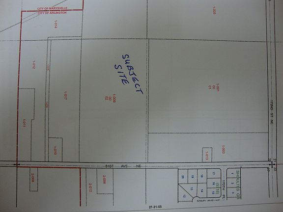 Value at Smokey Point! Appx 20.38 Acres Zoned General Commercial in Arlington, WA City Limits. Only 1.5 mi from I-5 Exit 206 via three signal intersections. Appx 700 ft of frontage on 51st Ave NE and appx 1262 ft depth. All level with no known critical areas. Can build to 4 stories. City of Marysville Water & Sewer Lines IN THE STREET, hook up OK via permits. Fire Hydrant, Monitor type Barn, 1959 Rambler Style House, presently on septic drain field. Value in the Land. Only 2.19 psf, below assessed value. Near Arlington Airport, major shopping, medical & emergency services and Military Support Complex. Invest or build with this one offered at $1,950,000. Adjacent appx 20 Acre Commercial Parcel ALSO available if you want to go big. Please call for appointment or info, Towne or Country RE, Inc.