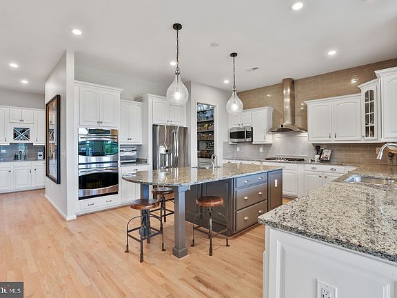 Come tour this beautifully-designed home Saturday June 8 from 1-3PM at the open house. This is the home that you've been searching for... For the discerning home buyers who are searching for a home that goes far beyond the ordinary, this is your home. Tucked and the end of a quiet cul-de-sac overlooking acres of open space and the Gary Player designed Raspberry Falls Golf and Hunt Club, this lot is one of the best lots in the entire community; the panoramic views are simply unmatched. Over $400K has been invested in improvements by the original owners, including a car-lover's dream garage with two hydraulic lifts (allowing 5 cars to be stored inside), custom built-in storage system, epoxy floor and improved lighting. One of the most sought-after models here in Raspberry Falls, the Northridge is a modern version of the cape cod style home that offers 10' ceilings across the main level, double tray ceilings soaring to 12' in the family room and in the main-level primary bedroom. The gourmet kitchen offers endless cabinetry, a large breakfast area surrounded by windows and is open to the family room with cozy fireplace with soaring boxed ceilings. The primary bedroom offers matching boxed ceilings, separate walk-in closets with custom organizer systems, plus an en-suite primary bathroom offering a spa-like experience with separate vanities, large soaking tub with separate oversized shower The lower-level is beyond description and simply must be experienced in person; it is a truly jaw-dropping. The owners have created a remarkable lower level that will be the envy of everyone who visits. A custom bar with reclaimed wood paneling, a wine-cellar, an open media room, a home gym, two bedrooms, (or use one room as a second home office), plus an entirely separate craft room with an amazing center island workspace. This walkout lower level leads to the rear patio with stone knee wall, a covered patio below the deck and an expansive rear yard. The upper level offers two generously-sized bedrooms, an additional full bathroom plus a separate sitting area, homework area or kids hangout area. The outdoor space was thoughtfully crafted to take advantage of the gorgeous and panoramic views of community open space and the golf course beyond. A covered porch with fireplace, cathedral ceilings, uncovered deck with stairs leading down to the covered patio offers incredible outdoor entertaining and alfresco dining options. Located 10 minutes from the center of historic downtown Leesburg with its restaurant and brewery scene, this location offers incredible convenience and sits at the gateway to western Loudoun County, with numerous award-winning breweries, wineries, parks, recreational farming venues, Potomac River access, proximity to the W&OD trail plus the C&O Canal trail that runs along the Potomac River. Call listing agent (and Raspberry Falls resident) Matt Elliott to schedule your private tour.