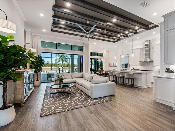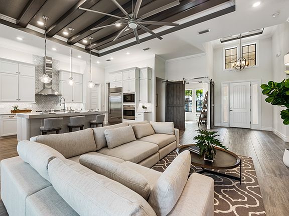 An absolute must-see! With striking curb appeal, luxurious, executive-level specifications and resort-style attractions in every direction, there's no mistaking the Toriana's stunning elegance.3 Bed, 3 Baths2 car garage16 ft entry foyer12 ft ceilings in kitchen, nook, great room, and bonus roomHuge great room with beamed ceiling detailGourmet kitchen with large islandLarge dining areaLarge den/study featuring beamed ceiling detail and sliding barn doorLarge bonus room opening to massive outdoor living spaceCovered portico with outdoor fireplace, large lanai and loggiaPool and spa