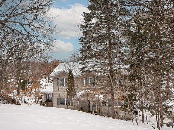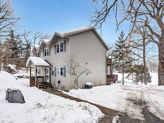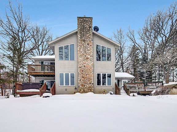 What a gorgeous lakefront property within an hour of Minneapolis/Saint Paul area and less than 1/2 hour from the St. Cloud area, boasting over 120 ft of lakeshore! Enjoy the views of this stunning waterfront from your above ground pool or hot tub, or as you dine lakeside on one of the three large decks or even enjoying an evening fire at the fire pit! Deck access from both bedrooms including each having huge walk-in closets, Convenience of main floor laundry & utilities! Thea well -equipped kitchen offers new appliances, maple flooring & beautiful cabinetry. The show stopping 2-story great room is flooded with light from its floor to ceiling windows flanking the gas fireplace. Just above is the open loft which can be used for an additional guest room or could be a great library or recreation space. Lakeside storage shed for all the toys, this year-round lake home is sure to impress!