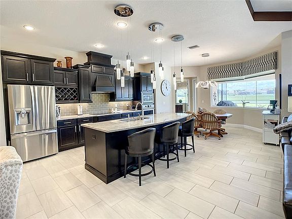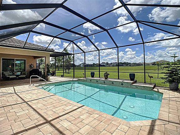 NO CDD taxes & LOW HOA fees. This Gorgeous sought after Lory Model boasting 3121 sq ft packs the WOW factor and the only one presently available in Rye Wilderness! The popular community of Rye Wilderness earns its reputation for its spacious ACRE LOTS, TILE ROOFS, PAVER DRIVEWAYS & LANAIS. This house aims to impress and as you walk up to the Custom Double Glass front doors you will know why. Large spacious open floor plan is why the Lory is so popular. Every chef will love this gourmet kitchen with built in FRIGIDAIRE PROFESSIONAL CONVECTION OVEN, INDUCTION COOKTOP (Boils water in 3 mins), All Stainless-Steel appliances, wood staggered cabinets, Large GRANITE ISLAND perfect for entertaining, the largest walk-in pantry of any model in RW & a built in desk. This eat in kitchen has plenty of room for a table while sitting at you can look out through your oversized aquarium window and enjoy the double lake view. All the lighting in the living areas has been upgraded to modern lighting. A magnificent owners en-suite with spa-like master bath has dual granite vanities, soaking roman tub, and a huge walk-in shower with glass enclosure. This generous owners suite has dual walk-in closets (one of which is huge), with private access to the lanai pool area makes this room the perfect retreat at the end of a long day. The OVERSIZED 3 CAR GARAGE (30x22) will be perfect to fit all your toys. So many upgrades.Plantation shutter, custom curtains, blackout screens, 8 ft doors throughout, Laundry rm w/ wood cabinets and sink. This 46 PAVER LANAI offers a resort style pool area is a vacation at home..large undercover area, 26 ft SOLAR HEATED POOL, Perfect for entertaining or just relaxing with the family and enjoying the beautiful double lake view. CHECK OUT OUR VIRTAL TOUR ATTACHED. Call today for a personal tour....