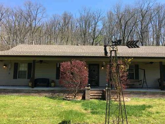 Ranch style home with covered porch sitting on 8 acres m/l overlooking a spring fed creek. 4 bedrooms, 3 baths, 2 utility areas. Hand scraped wood floors, carpet and tile. Wood pellet stove heats entire home. Large pantry, granite counters, walk in closets. Additional workshop/office area off garage not included in square footage.