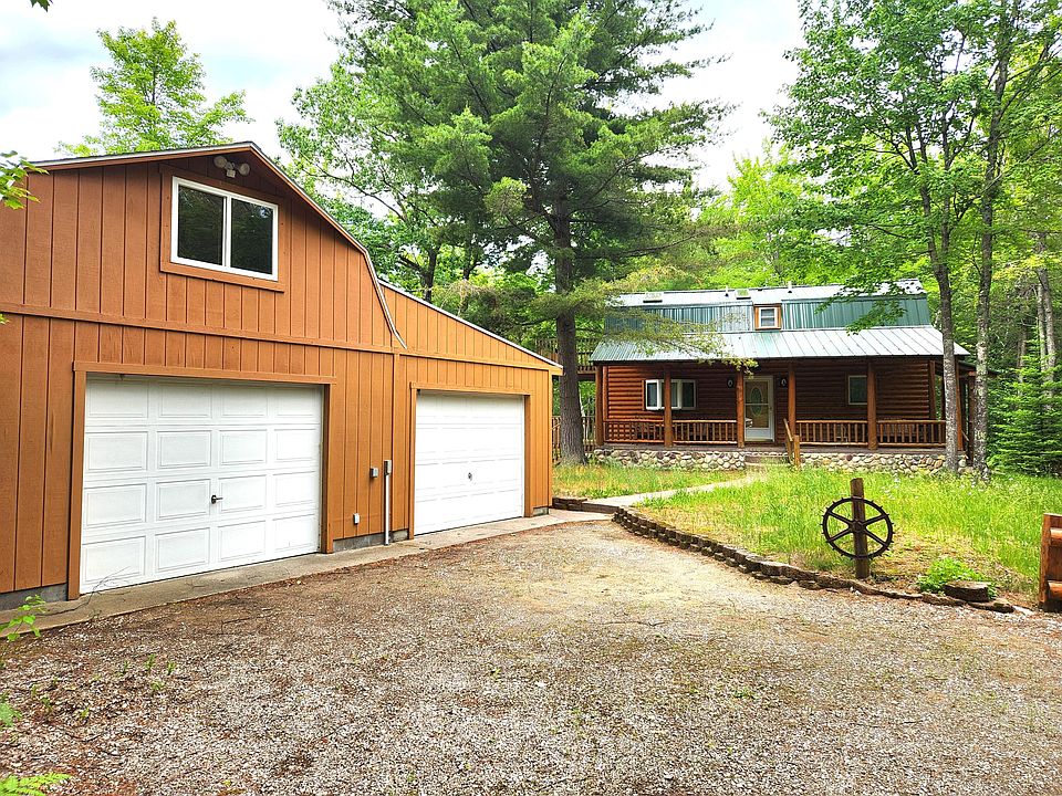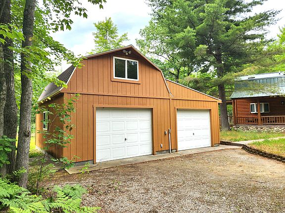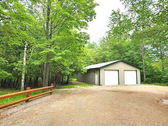 Log sided home with all the bells and whistles you could ask for... spacious bedrooms, two baths, a tongue & groove pine interior and a beautiful wood beamed ceiling, an awesome kitchen and a stone fireplace in the family room. The home is tucked back off the road in the middle of 15 acres of mature hardwoods and pines. The private setting offers a large pond for swimming or fishing, a detached 2-1/2 car garage with a finished/heated workshop or game room and second floor storage. Plus there's a huge 30x50 pole barn with 2 9' overhead doors for all your toys or RV storage. The property is situated in a sportsman's paradise with abundant game for hunting, a multitude of inland lakes for fishing & swimming, near state land for hiking, hunting, snowmobiling and ATV riding.