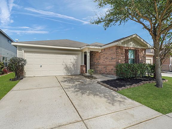 Single story KB home! Set near cul-de-sac in Ella Crossing. Energy savers include radiant attic barrier and low-E insulated windows. Three spacious bedrooms with two full baths. The flowing floorplan is great for entertaining! Neutral paint, easy care tile flooring and high ceilings. Bright, open concept Great room/Dining combo. Sparkling kitchen with recessed lighting and attractive appliances features plentiful prep space and cabinetry with crown trim. Extended serving bar and spacious pantry. Laundry with shelving. Split plan-Primary Suite with private bath: Relaxing soaker tub/shower, sit-down vanity and large walk in closet w/built-ins. Fenced backyard with patio. Community playground. Spring ISD schools. Convenient to local restaurants and shopping.