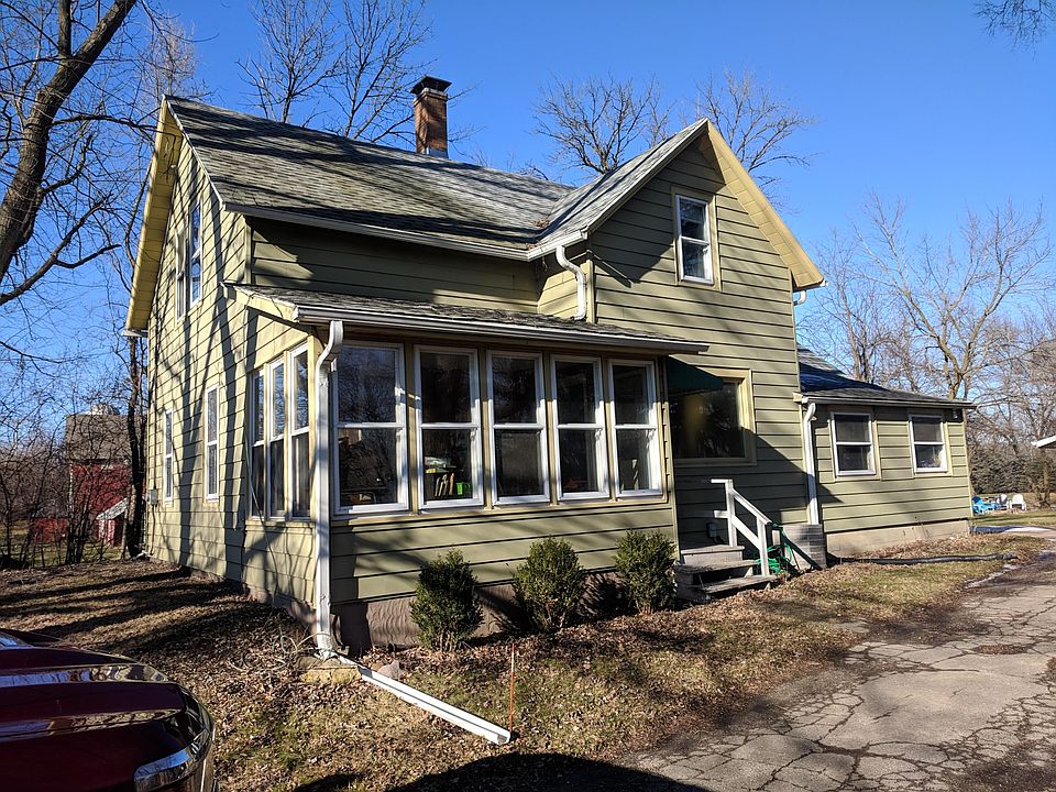 This farm house is located on 5.82 acres just west of I-94. There is a lot of room in the several out buildings including a larger barn w/loft. It is semi-wooded and has a pond. There are 3 bedrooms upstairs with limited closets which is typical for farm homes of this age. Horse allowed. A very beautiful property with unlimited potential.