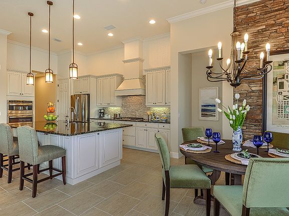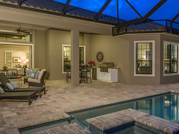 Graceful Montecito by Neal Signature Homes is stylish and comfortable. The open-concept center of the home design holds the great room with optional coffered ceiling, dining area, well-appointed kitchen with expansive island, and breakfast nook. A separate formal dining room can be converted into a den or fourth bedroom instead.The master suite includes a large bedroom with sitting area by an elegant bay window, two walk-in closets and master bath with dual sink vanities, private water closet, and large shower. A spacious covered lanai with optional rough-in for an outdoor kitchen offers a comfortable spot for relaxing or entertaining. The home also includes optional pre-wiring for a pool.