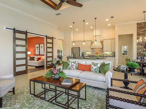 Graceful Montecito by Neal Signature Homes is stylish and comfortable. The open-concept center of the home design holds the great room with optional coffered ceiling, dining area, well-appointed kitchen with expansive island, and breakfast nook. A separate formal dining room can be converted into a den or fourth bedroom instead. The master suite includes a large bedroom with sitting area by an elegant bay window, two walk-in closets and master bath with dual sink vanities, private water closet, roomy shower and optional soaking tub. A spacious covered lanai with optional rough-in for an outdoor kitchen offers a comfortable spot for relaxing or entertaining.