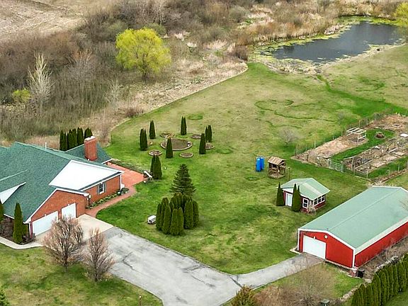 All-Brick Ranch with Pond, Pole Barn & More!Welcome to this solid all-brick ranch offering comfort, space, and functionality inside and out. Situated on a scenic 9.8 acre lot with a stocked 1/4-acre pond full of bass and bluegill, this 3-bedroom, 3-bath home is perfect for those seeking peaceful living with modern amenities.The interior features a spacious layout with a wood-burning fireplace, dedicated home office, and a full basement for added flexibility. The kitchen boasts updated granite countertops, and the primary suite includes a private bath and a walk-in closet.Recent updates include the furnace, air conditioner, roof, and a central vacuum system is an added convenience. A whole-house generator adds extra peace of mind.Step outside to a huge patio, perfect for entertaining or relaxing. You'll appreciate the oversized attached 3-car garage, along with a 30' x 64' pole barn and a 12' x 14' shed for all your storage and workshop needs.A rare find with great space, utility, and outdoor features--schedule your showing today!