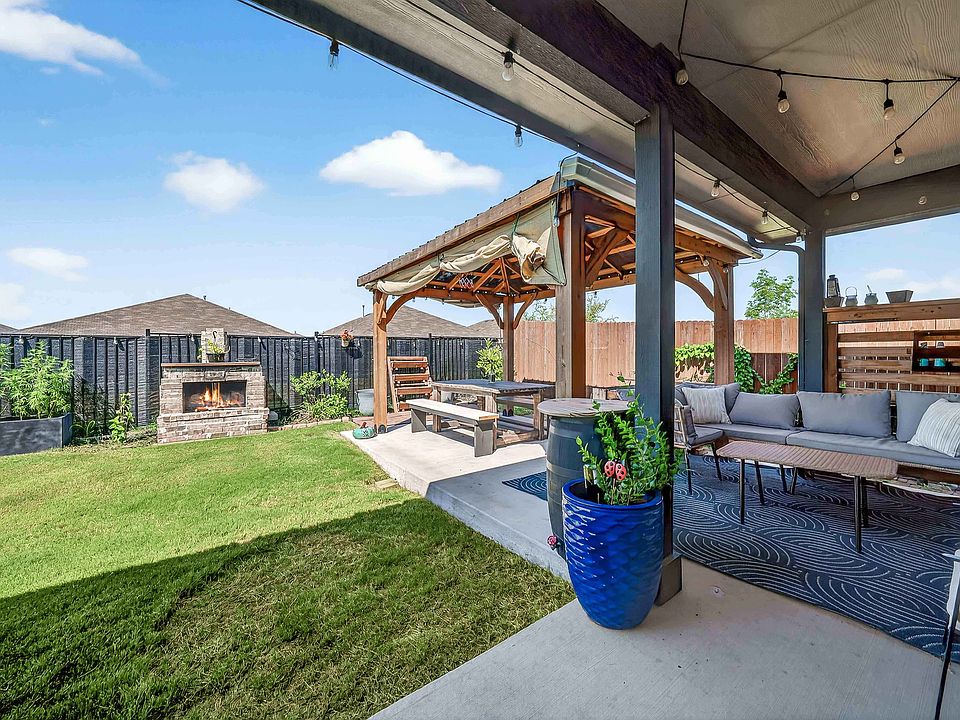 Stunning single-story 4-bedroom home brimming with custom touches and stylish upgrades! Step inside to a striking feature wall that sets the tone and offers the perfect spot for coats and backpacks. The smart split layout places secondary bedrooms at the front, giving the primary suite a private retreat. Flooded with natural light, the openconcept design showcases a gorgeous kitchen with a spacious center island, gleaming gas range, and abundant cabinetry perfect for everyday living or entertaining. The primary suite is a true escape with a luxurious ensuite featuring built-in storage and an oversized walk-in shower. The backyard is an entertainer's dream with a large covered patio and a beautiful outdoor fireplace, ideal for cozy evenings. All this in a prime location within a vibrant community offering fantastic amenities!
