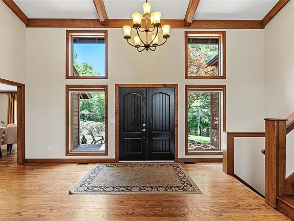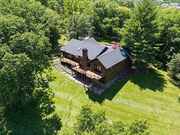 Welcome to a private oasis nestled on 3.5 acres in a serene wooded area, just minutes from the conveniences of Chesterfield Valley! This stunning home offers the perfect blend of tranquility & accessibility, with schools & amenities nearby. Main floor offers soaring ceilings, sleek wood floors & an open floor plan flooded with natural light. You'll love the expansive great room that seamlessly connects to the bright kitchen, boasting ample counter space & stainless appliances. Walk outside to the sprawling deck spanning the entire back of the house & soak in the beautiful views. Primary bedroom features a private deck & a spa-like bath to relax & unwind. With 4 additional bedrooms & 2 full baths, there's plenty of space for family & guests. Lower-level walk-out offers even more living space, including a family room & office—ideal for entertaining. Outside has ample room for gatherings & plenty of room for a pool to enhance your outdoor oasis. A sanctuary to call your own!