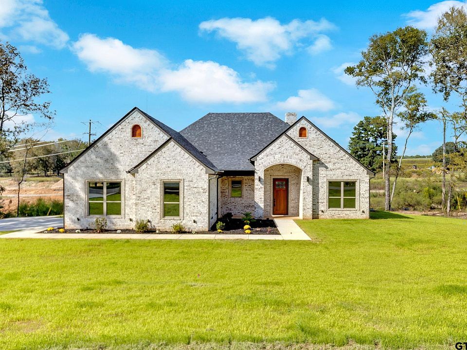 Welcome to your dream home in the heart of East Texas! This brand-new 4-bedroom, 2.5-bath home in the desirable Meadow Crest subdivision offers the perfect combination of modern design, high-end finishes, and small-town charm. Situated on a generous half-acre lot, this 2,200 sq ft home features 10-foot ceilings throughout, with dramatic cathedral ceilings in the main living area that elevate the open-concept floor plan. The spacious living room flows seamlessly into a designer kitchen featuring a large island, butler’s pantry, custom cabinetry, and upgraded fixtures—ideal for entertaining or everyday comfort. Luxury vinyl plank flooring, exposed wood beams, and natural light add warmth and character throughout. The split-bedroom layout offers privacy, with a serene primary suite and a spa-like bath, while secondary bedrooms are spacious and versatile. Curb appeal shines with fresh landscaping, a long concrete drive, and a beautifully crafted brick exterior. Located just minutes from downtown Lindale, with easy access to Toll 49 and I-20, this home offers convenience without sacrificing space or peace. Don’t miss your chance to own this move-in-ready gem in one of Lindale’s fastest-growing communities!