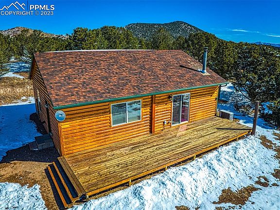 Mountain living at it's finest! This pristine move-in ready 2 bedroom, 2 bath cabin has stunning views of the Sangre de Cristo and Wet mountains from the south-facing 360 sq ft front deck, an oversized heated and insulated garage with a workshop and storage room, and a serene setting on close to 3 acres, for your year'round enjoyment or recreational use. Bring your horses or other animals, there is plenty of space for additional outbuildings. Designed for casual and comfortable mountain living, the eat-in kitchen has tile floors and countertops, beautiful hickory cabinets, laundry, coffee bar, and opens to a large living room with vaulted ceiling lined with beetle kill pine, woodburning fireplace and sliding door with tile surround leading to the deck. Two large bedrooms are separated by a beautiful full guest bath with tile shower walls and flooring and solid surface countertop. The master bedroom has a large private bath with rustic tile accents, and two sinks. Equipped with electric baseboard heat, the wood stove, plus a super-efficient mini-split system, the home is cozy in the winter and is comfortably cool during the summer. The oversized and insulated 2 car garage has plenty of space for parking cars and toys, plus offers a workshop and storage/project room, and can be heated with a wood stove. The property also has a shed for additional storage. Located at 7,684 elevation and only .6 miles from a paved county road, the cabin is just 45 minutes from Cañon City and only 25 minutes from Westcliffe, offering easy access to incredible outdoor recreation, including skiing, hunting, off-roading, hiking, and of course fishing the nearby Arkansas River.