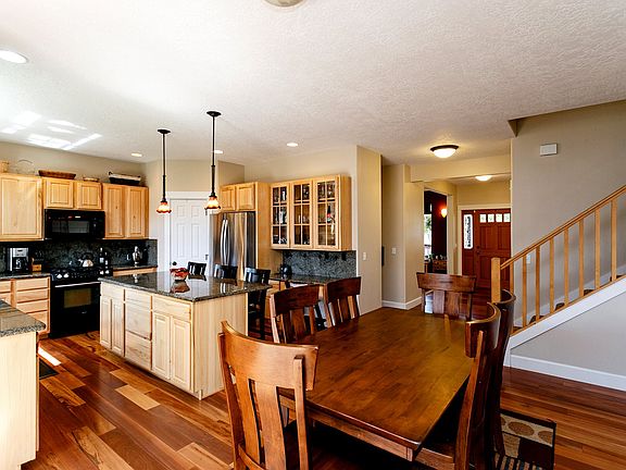Quality finishes & a great layout set this home apart! Amenities include solar panels, tigerwood flooring, granite countertops, vaulted ceilings & a stone gas fireplace with built-ins. 3 Bedrooms with flexibility for a den/office & large bonus room with plenty of storage. Kitchen with pantry & an island are open to the living room & flow nicely to a fenced yard with a pergola covered deck. Check out Mt. Hood from the master suite!