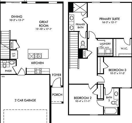 The open floorplan allows for conversation to flow through the kitchen, great room and dining nook. White cabinets with Bengal White Granite countertops, Arena Casper Travertine-look tile flooring and warm grey carpet in our Crisp package.