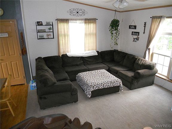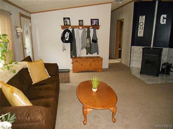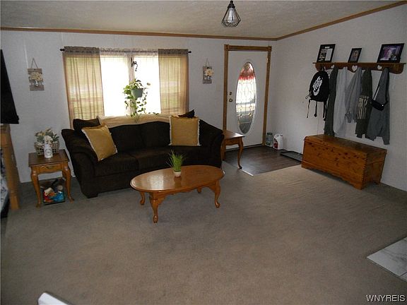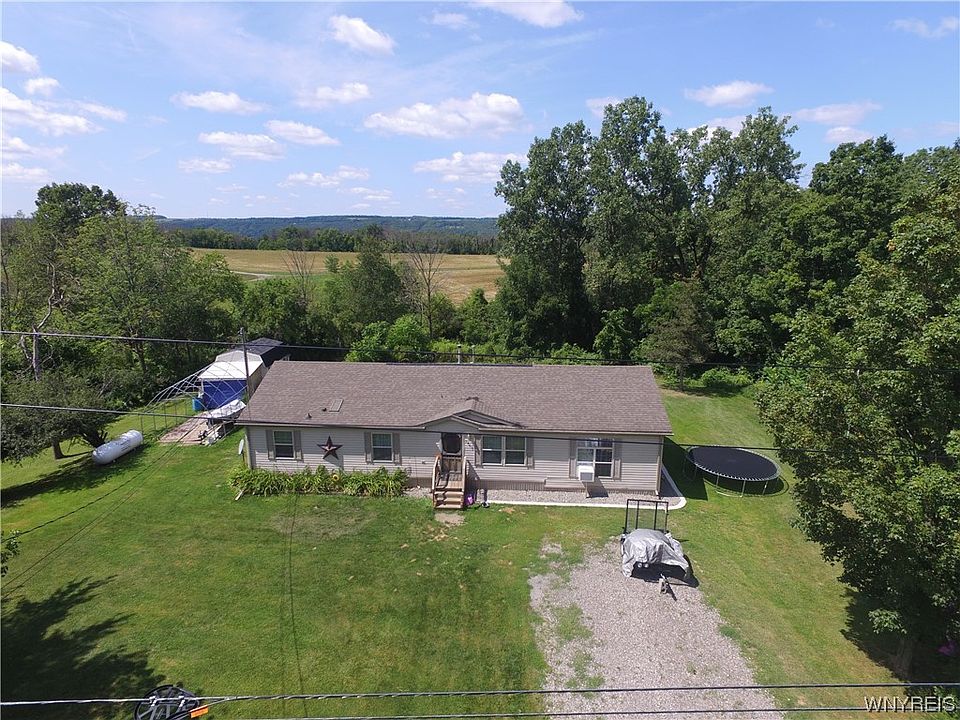This one wont last long! 3 Bedroom, 2 Bath 3 section mobile home situated on 2.5 acres of wooded lot. The primary bedroom featured an ensuite bathroom with soaker tub and walk in shower. All appliances (Refrigerator, microwave, washer, dryer, dishwasher) are included as well as the walk behind snowblower, Riding lawnmower and trampoline, 210 Gallon poly water tank (to fill the pool in the spring.) (appliances and snowblower and mower included at no additional value) Off the large deck is the above ground pool. In the back yard you will find a shed with loft storage as well as electric service! UV filter on well and heated pipes to prevent freezing. New hot water tank in 2020. This spacious open floorplan home can be yours if you act fast!