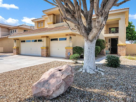 Welcome to this spacious 4-bedroom, 3-bathroom Fulton home with a bonus den, located in the sought-after Ashley Park community. From the moment you enter, you'll notice soaring ceilings, clerestory windows, and an open floor plan that feels bright and welcoming. The upgraded kitchen features granite countertops, an island with seating that opens to the family room, a smooth-top range, built-in microwave, and ample room for the breakfast table. A downstairs bedroom and full bath offer added flexibility, while the upstairs primary suite boasts vaulted ceilings and generous space. French doors lead to a private backyard complete with a shade tree, a grassy area, and a Pebble Tec® play pool with a removable safety fence. The covered patio and north/south facing lot make outdoor living enjoyable year-round. Additional highlights include a 3-car garage with built-in cabinets and workbench. Just a short walk to Sanborn Elementary and the community park. Conveniently located within a short distance to both downtown Chandler and Gilbert, and a quick drive to shopping, 202 and 60 freeways. It's a must see!