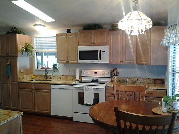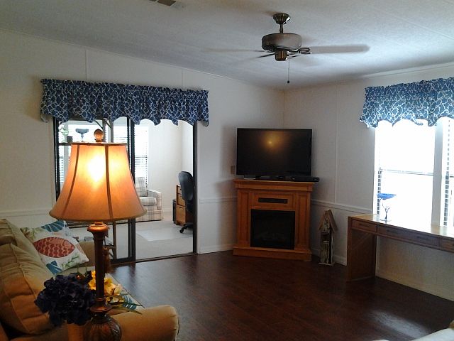 Beautiful 2bed/2bath, spacious open living, dining, kitchen. Front sun room is under air to add additional living space. You will love the expensive upgrades in kitchen cabinets, newer appliances with granite countertops. Stunning new high end laminate flooring throughout. Master bedroom suite with spacious bath.. Exterior of home including driveway freshly painted. New indoor outdoor carpet installed in storage shed and side lanai. New carpet in both 2nd bedroom and master. A MUST SEE home.