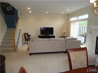 Nothing to do but move into this contemporary townhouse in Whitehall Township. The many features include economical gas heat, central air, gas fireplace and deck overlooking tranquil woods. The basement walks out to patio and fenced yard. There is a one car garage with opener. The kitchen is eat-in with breakfast bar. There is a formal dining room, living room combination, which is tastefully decorated. The laundry is on the second floor and the master suite is large with walk-in closet, bathroom with 2 sinks, shower and jetted tub. A must see!
