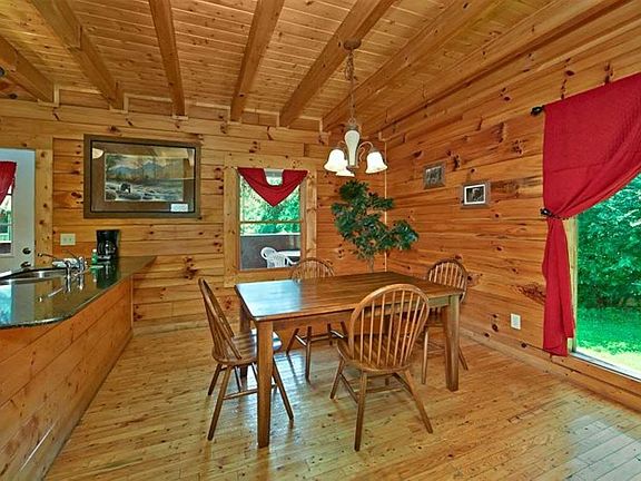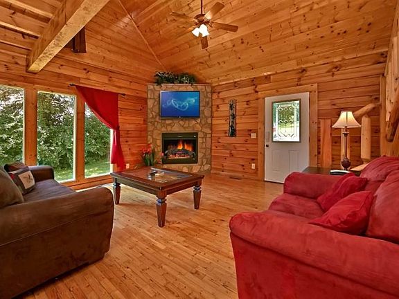 2 bedroom, 2 bath log cabin in Sevierville. Only minutes to most all area attractions, shopping, and restaurants. Only seconds to the Parkway in Sevierville and minutes to Pigeon Forge. In a very nice resort community offering a swimming pool, picnic area, pond, and playground. This 2 story cabin features an all wood interior, hardwood floors on the main level, cathedral ceilings, 2 master suites (each with a whirlpool tub), 2 fireplaces (one in the living room and one in one of the bedrooms), a covered deck in the front and back of cabin, and a hot tub. Comes fully furnished and decorated. Already established on overnight rental and does great. Offered at a great price!