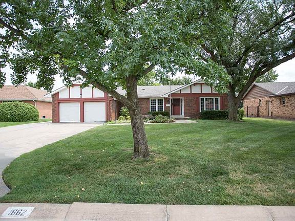 This is an incredible 1966 well built ranch style home close to the Woodlawn and 13th area of Wichita, KS. This home has 3 large bedrooms upstairs and 2 bathrooms upstairs and one downstairs. The master suite is very large with an in-suite bathroom. This home has brand new carpet throughout, and fresh interior paint throughout the house. There are original hardwood floors under almost the entire main floor. This home features a main floor laundry room. There are very nice custom built plantation shutters in the living room and den area of this home, that are top of the line construction. The woodwork in this home is beautiful Ash wood. The back yard is well done with a covered patio area. The garage is oversized with an area that is very nice for a workshop. There is a concrete slab outside the garage area which is very nice for a small rv, trailer or extra car to get off the street and front driveway. This is an all electric home with a heat pump installed 6-22-2015. The home features a nice wood burning fireplace on the main floor. The kitchen has beautiful cabinets, newer countertops with great access to a dining nook and living room area. This home has a large and bright basement with tons of storage and a room used as an office. There is a bathroom downstairs in the utilities area, with a shower. There is also a utility sink in the basement utility room. The yard has a sprinkler system. There is tons of well utilized cabinet space in the kitchen and throughout. This is a quality Richard Scott built home, a prominent builder of the time. Come take a look at this house and make it your home.