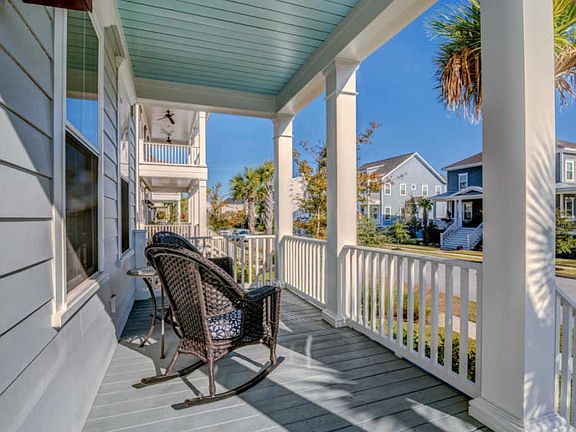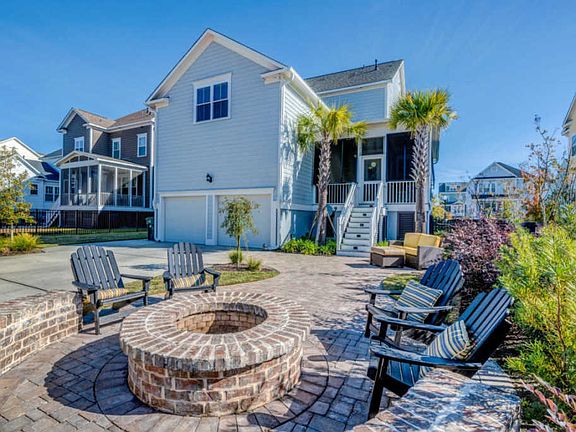 Stunning 3 story, traditional Charleston home with double front porches and large backyard retreat with custom built, brick fire pit and patio. Open kitchen with a large center island, granite countertops, stainless steel appliances, custom cabinetry and an adjoining breakfast area. The spacious family room offers a direct vent fireplace with gas logs, built-in bookcases and base cabinets for storage. Located right off the foyer is an elegant dining room accented with wainscoting and air rail. Hardwoods throughout first floor and stairs. The second floor features an expansive owner's suite with a tray ceiling, double walk in closets and a private porch. Master bath includes dual vanities, a soaking tub with tile surround and an oversized tiled shower. Excellent storage throughout home. Two additional bedrooms are on the second floor. Another bedroom is located above the attached garage and can be used as a flex space or bedroom. The 5th bedroom is on the 3rd floor with full bath and would be perfect as a guest retreat or private office space. Irrigation system. Large driveway for parking. Large garage with extended ceiling. Located just down the road from Smythe Park which features an 11 acre lake, meandering trails, picnic areas and a playground. Also down the road from the Crow's Nest which is the newest of 3 pools on Daniel Island that property owners have access to.