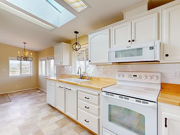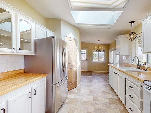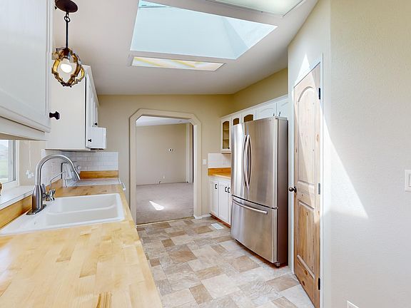 Escape to the country and enjoy this well-maintained home, with 3 large bedrooms and two baths. It also features stove, dishwasher, microwave, refrigerator, washer, and dryer. The neutral soft white tones provide a perfect backdrop for your color palette to shine. Relax on the covered patio while admiring the detached 2-car garage and the large shop, offering great storage with multiple large roll-up doors. King Hill water is included with the property. This land can be split.