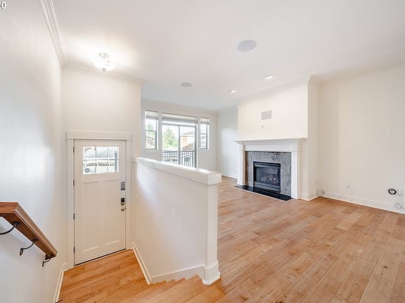 Sophisticated two-bedroom, two and one-half bath townhome with 1,872 square feet of living space sure to satisfy the most discerning buyers. Quality finish work throughout with hardwood floors, new carpet, built-in speakers, cherrywood cabinetry, granite, and marble countertops! Primary bedroom suite featuring a gas fireplace, luxurious bathroom, dual vanities, walk-in closet, and Mt Hood view. Secondary bedroom with en suite bath. Conveniently located minutes from downtown and the Oregon Zoo.