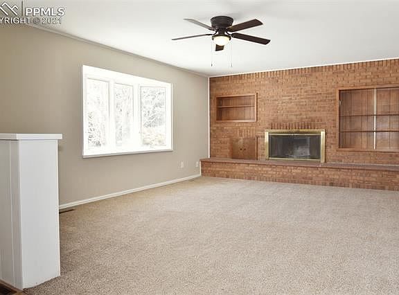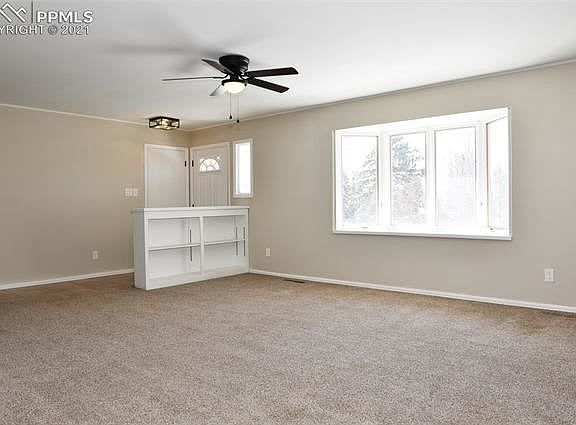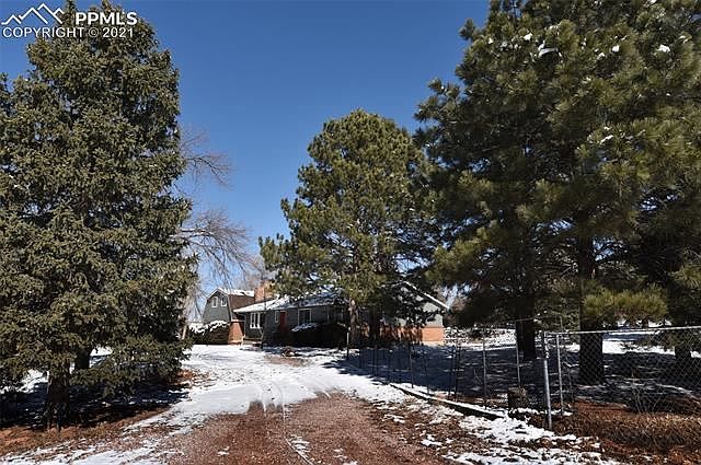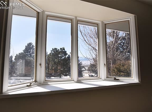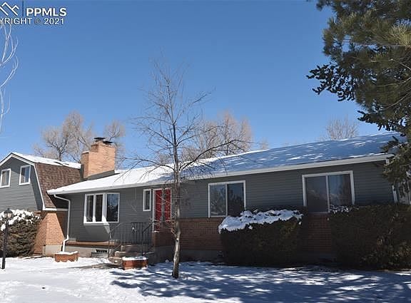 Located in Academy D-20 school district on a 1.59 acre wooded lot with Pikes Peak views and a decidedly rural feel, this 4 bedroom 3 bath home with freshly painted main level is a must see! A warm and inviting living room features a massive brick fireplace and bay window framing Front Range range views. The adjacent dining room includes wainscoting, a handsome tile floor, plus a walk-out to the covered deck. An updated kitchen includes stainless steel appliances, new counters and tile flooring. From the dining room, a stairway leads upward to a massive family room with wood flooring, a 2nd wood-burning fireplace, lots of storage areas, and heated by a separate gas furnace. A main level master bedroom offers wood flooring and an attached bathroom with additional closet space plus storage cabinet. Two additional main level bedrooms, each with wood flooring, plus an updated full bath complete the main level. The basement boasts a huge 2nd family room, an office, plus a 4th bedroom with adjacent 3/4 bath. A large unfinished area includes built-in cabinets with counters, closet and more provides an ideal space for a craft room, work out space, or additional storage. The attached over-sized heated 2-car garage includes ample space for a workbench and more storage. The covered deck off the dining room and kitchen overlooks a patio surrounded by an expansive terraced area, perfect for fruit trees or flowering shrubs. Behind the terraced area, the wooded back yard includes a large clearing for recreational space boarded by trees. Adjacent to the back yard of this "zoned for horses" property is a corral with loafing shed. So close to shopping, the Air Force Academy, I-25 and much more; yet this special property feels like a private personal oasis. You'll want to see this home today!