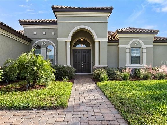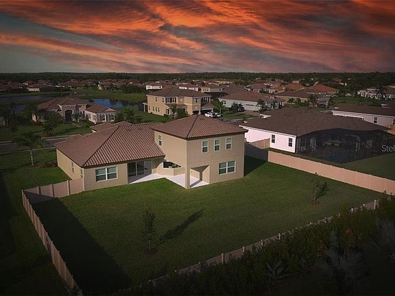 From the pages of a magazine comes this extraordinary better than new home in the sought after Rye Wilderness Estates. This fabulous home is better than a model, with unrivaled attention to details and unparalleled finishes. This impressive Estate Home conveys grandeur and Elegance throughout every aspect of this unique LORY floor plan with a Bonus room for a total of 4056 sqft, the most sought out floor plan in this neighborhood, with tile roof, paver driveway and ½ acre lot. Double 8ft doors welcome you to this gorgeous Open Floor Plan, 10ft ceilings with crown molding, coffered ceilings, wood composite flooring thru out all living areas and master's suite. To the left the Formal dining room, continue to the immense great room with its beautiful gourmet kitchen featuring a center island, unique backsplash, SS appliances with decorator vented hood to the outside, under counter lighting, spacious finished walk-in pantry, solid wood cabinetry with pullouts, quartz counter tops, induction cooking at its finest, just to name a few of the upgrades. Double 8ft doors to the master's spacious retreat with his and hers, California style walk in closets along with a luxurious bathroom that includes a gigantic separate shower, dual sinks and a garden tub to relax. Another 3 bedrooms on the main floor, each with their own private bathroom. Up the stairs is a spacious bonus room with your fifth bedroom and a full bathroom for a perfect play room/TV room for the whole family to enjoy. The spacious laundry room has upgraded solid wood cabinetry. In addition to all of this, this home boasts a 3 car garage. Rye Wilderness is situated only approximately 10 minutes to the interstate and 30 minutes to world famous beaches, near top A rated schools, close to St-Pete, Tampa and Sarasota. NO CDD's in this neighborhood and low HOA's makes this the perfect setting for your new home. Completely fenced. Great curb appeal.