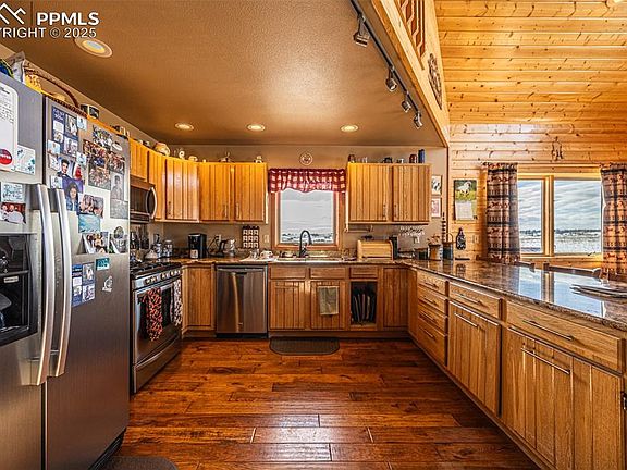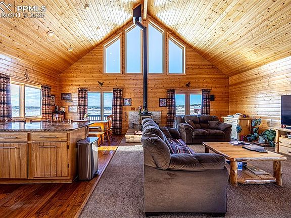 Welcome to your private slice of country living, just 20 minutes from town and 30 minutes from Peterson Space Force Base. Nestled on 5.1 acres, this stunning ranch home offers the perfect blend of rural tranquility and modern convenience. Step inside to be greeted by the warmth of beautiful wood accents throughout, creating a cozy and inviting atmosphere. The spacious living room features a wood-burning fireplace, perfect for chilly evenings. Large windows bring in plenty of natural light, enhancing the home's rustic charm. The open U-shaped kitchen is designed for both functionality and entertaining, offering ample counter space, plenty of cabinets, and a layout that makes cooking effortless. Whether preparing a quiet meal or hosting guests, this kitchen is sure to impress. Outside, the property is ideal for those who love space and freedom. With zoning for horses, a barn, and shed, you have the opportunity to create your dream equestrian setup. The almost flat, easily accessible driveway ensures year-round convenience, while the surrounding landscape provides breathtaking views and a peaceful retreat from the hustle and bustle. Enjoy the best of both worlds—secluded country living with quick access to town amenities. Whether you’re looking for a place to raise animals, enjoy outdoor activities, or simply relax in nature, this property is ready to welcome you home. Schedule your showing today!