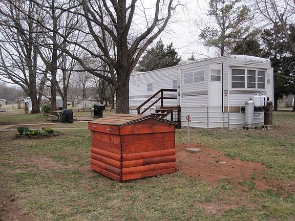 Look no further for that weekend getaway home at Stockton Lake. This offering has a 2005 model 44ft. RV/Trailer on two very well kept lots in a subdivision with lake access less than a mile from the water. The trailer has 3 slides and queen bed in the bedroom in the back. Bunk beds allow for more sleeping space. Gas stove and oven and ample cabinet space. Shower/tub and stool in the bathroom. Lot is beautifully landscaped with a detached double car garage or storage for your lake toys. There is also a storage/outbuilding on the property. It is possible to purchase the property without the trailer at a reduced price.