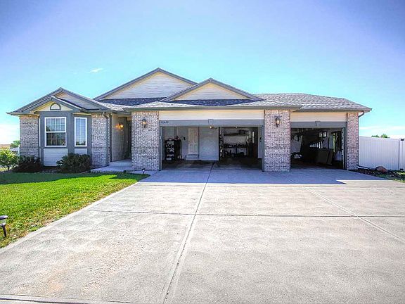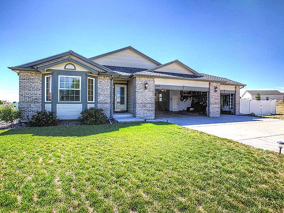 Welcome to the peaceful country living in this Popular Box Elder Ranch neighborhood! This modern style ranch is updated with a gorgeous rock wall behind the "included" TV and fireplace, accented rock wall down the stairs. Freshly painted interior, main level master bedroom with master bath and walk-in closet on one side of the main level away from the additional (2) main level bedrooms for privacy. In the beautifully finished basement, you have a projector with surround sound, an office or work out room and (2) bedrooms divided by a jack and jill bathroom. Many custom built-ins in the basement that make it unique and cozy! The yard is fenced off for privacy a newly built 30x30 garage with a loft, an area built for a bathroom or storage area, and also some prewired electrical has been started. Surround sound system with the projector are nego. Seller is offering a $3500 carpet credit or will replace carpet with samples provided. Ask agent for details.