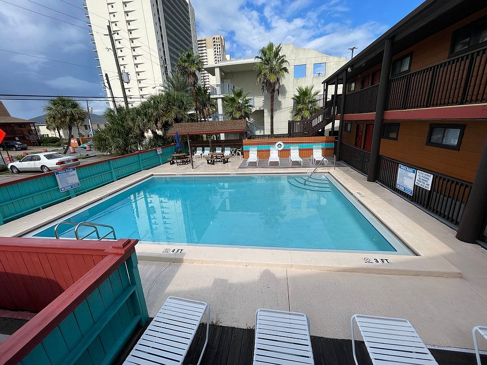 Walk to Pier Park and the beach! Cute 1 bedroom, 1 bath top floor condo (2nd floor) with covered balcony overlooking Lullwater Lake. Community pool and coin operated laundry facility. Water, sewer, garbage, basic cable, internet, pest control and ac filters are provided by the HOA. NO PETS