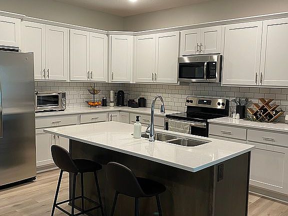 Move-in ready, newly built townhome across the street from Shuler Elementary. Just over 1,800 SF of finished space on the main and upper levels. Over 700 SF of additional unfinished space in the basement. Basement is plumbed for full bathroom, and has an egress window for potential fourth bedroom. Walk in the front door to the living room with open concept to the kitchen and dining. The kitchen has all the most haves...large walk-in pantry (plus additional pantry), island, quartz counters, LVP flooring and stainless steel appliances. Second level has huge master suite plus two additional bedrooms perfect for home office, guest room, or kids rooms. Master on-suite has double sinks, tile floors and a huge walk-in closet with access to laundry room. Laundry room features folding table, tile flooring and access to the master closet. Two car attached garage. All kitchen appliances included. Affordable $145/mo HOA cares for exterior building maintenance, lawn care, and snow removal. Please be pre-approved prior to showing.