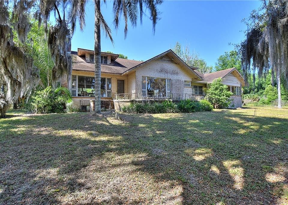 Welcome home to this incredibly built 1950's custom home situated on almost 15 acres of LAKEFRONT property! Soaring views of Lake Ella, an approximately 29-acre lake, can be seen wherever you are located throughout the home. Original hardwood flooring is featured throughout all bedrooms, family, and dining rooms. Large, panoramic windows display 100's of feet of lakefront property in the master bedroom, dining, and family rooms. The stunning stone-built fireplace adds old-world charm to the family room. All bathrooms feature retro 1950's decor for those who love all things antique. All bedrooms are oversized and feature lots of storage. 2 sheds are located on the land for storage. Enjoy your evenings sitting on the raised back patio that overlooks Lake Ella and watch the day go by. A larger open patio is also offered on the side of the home for al fresco dining. The large circular driveway leads into your own extra-large carport. Recently updated Carrier 7 TON A/C. The basement features two large storage rooms that you can't find in any new home build these days. This home has all of the amazing quality and features that you would expect from a custom-built home. Lots of little storage areas throughout the home have been added along with a cement wall safe! Enjoy privacy, space, and spectacular views with this one-of-a-kind property. PLEASE NOTE: adjacent 12acre property is being sold with this property. Legal is as follows: BEG AT SW COR OF NW 1/4 OF NE 1/4, RUN N 786 FT, E 600 FT, S 786 FT, W 600 FT TO POB ORB 4760 PG 1319