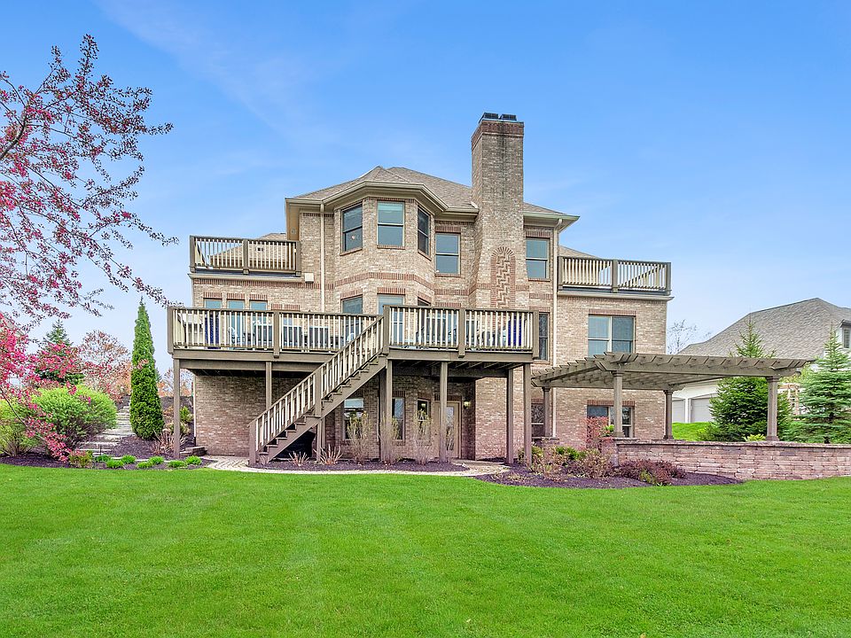 Welcome to Brookside! - If You have been Searching for the Perfect Home that Checks all the Boxes This is Your Home! This Beautiful 5 Bedroom, 5 Bath home Features Multiple Trex Decks with a Walkout Lower Level that sits on a Premier Water Lot with a Picturesque View. The Main Floor Features a Beautiful Great Room w/ Soaring Ceiling w/ Fireplace and Lg. Windows, a Spacious Kitchen w/ Breakfast Area, Sun Room surrounded by Windows, Office, Formal Dining Area & Main Level Guest Suite w/ Full Bathroom. Upper Level Features Spacious Master Suite w/ Two Walk In Closets and a Bonus Room and Access to a Private Deck. Bd. Rm 2 Features a Spiral Staircase to Bonus Area for Gaming or Play/Flex Space & Lg. Walk In Closet adjoined with a Jack & Jill Bath to Bd. Rm. 3 which Offers Access to a Private Deck & Spacious Closet. Lower Level Features 9 Ft. Ceilings, Wet Bar, Fireplace, Guest Suite, Full Bathroom, Theater Area (All Equip., Theater Chairs, Bar & Pop Corn Machine stay) Gaming Area, Work Out Room & Flex Space. The Lower level Walks Out to an Exterior Hardscape Patio that is an Entertainers Dream w/ Fire Pit and Lush Landscape. Hard to find 4+ Car Garage complete with a 50 amp. Electrical outlet ready for your Electric Car charger. Minutes from The Bridgewater Club. Brookside offers Beautiful Walking Trails, Play Ground, Club House and Outdoor Pool.