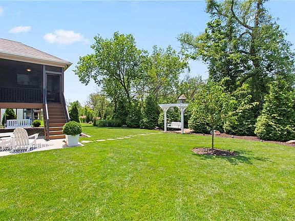 Immaculate Reverse 1.5-Story Home with designer touches and private, landscaped backyard oasis. Step into luxury living in this light-filled home that’s been impeccably maintained and thoughtfully upgraded throughout. From the moment you enter, the striking barrel ceiling sets the tone for the refined style found in every corner. Light wood floors run through the main living areas, complemented by upgraded carpet in bedrooms. The open floor plan is highlighted by designer tray ceilings, fireplace, automatic blinds, and cozy office nook off the living room creating an elegant yet comfortable ambiance. The kitchen is a chef's dream with a large island, stainless steel appliances, custom cabinetry, and a pantry upgraded with built-ins and its own countertop workspace. A spacious dining area flows onto a screened-in deck featuring a cozy fireplace, TV hookup, and low-maintenance Trex decking—perfect for relaxing or entertaining. Enjoy privacy and tranquility with an extensively landscaped backyard framed by mature trees and thoughtfully designed outdoor spaces. The main level includes the luxurious primary suite with dual vanities, large shower, makeup counter, and two walk-in closets, all conveniently connected to a laundry room with custom cabinetry and a folding station. An additional main-level bedroom (or office) and full bath add flexibility for guests or work-from-home needs. The expansive lower level offers two large bedrooms, a full bath, and an extensive recreation area with bar—ideal for entertaining. Unfinished sections present exciting possibilities: additional bedroom, media room, gym—or keep it as generous storage spaces. The striking curb appeal with manicured landscaping in front and back complete this turn-key home. Don’t miss the opportunity to own a home that offers both modern sophistication and timeless comfort in one beautifully designed package!
