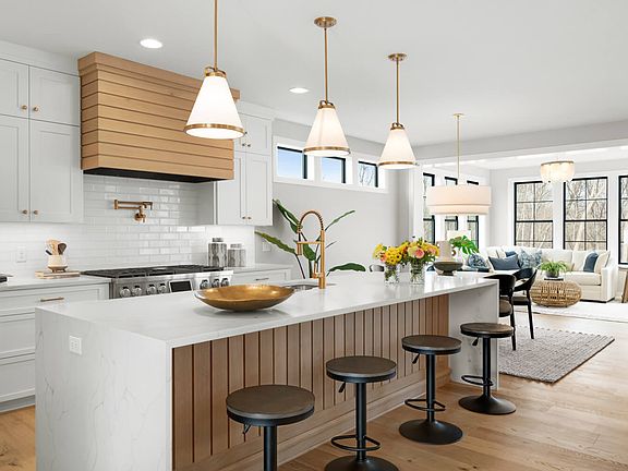 Architecturally designed modern Tudor created exclusively for Robert Thomas Homes by notable Minnesota architectural firm David Charlez DesignsExterior is detailed with LP SmartSide® prefinished siding, including wrapped windows and trim boardsFoyer features stunning box vault with smooth ceiling and wood coffersGrand open staircase to upper levelGathering room features wall of windows, fireplace, and optional built-in cabinetryKitchen features large center island with sink, and adjacent dinette and sunroomUpper level features 4 bedrooms, 3 baths, laundry and spacious bonus roomOwner's bath with double vanities, free standing tub, ceramic tile shower, and private water closet4th bedroom features en suite bathroom and large walk-in closetFinished staircase to lower level with space for future family room with optional fireplace, additional bedroom, bathroom, and storage roomOptional sport court*3 car garage with optional 4' addition*Subject to lot size*Home prices refer to starting from price and do not include optional home elevations, options, upgrades, or lot premiums. Prices, square footage, and availability are subject to change without notice. Photos, virtual/video tours, and/or illustrations may not depict actual home plan configuration. Features, materials, and finishes shown may contain options that are not included in starting from price.