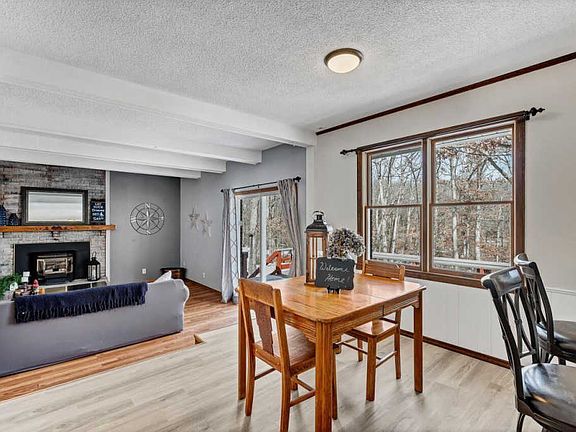 Back On market due to no fault of seller. Are you looking for your own personal year round resort living near Innsbrook or a second home? Don't miss this all brick adorable 1.5 story home that sits on wooded 4+ acres & backs up to your own small lake! The lake's stocked w/ fish & would be great for a small boat. Wildlife is abundant & deer come up in the yard!Mstr bdrm and 2nd bdrm on main fl plus 2 large bdrms upstairs. Lower level is unfinished walkout with a full bath that exits out to an entertaining patio. Open the front door to a large multi use living space & leads to a kitchen with large breakfast bar for a quick bite or sit down in the breakfast room & enjoy the view. Kitchen has newer countertops/backsplash & flooring. Step down into lg family rm highlighted by brick fireplace & slider that walks out onto a large deck. Imagine starting or ending your day overlooking this peaceful scenery. Newer septic & upgrades - Don't miss the opportunity to own your own paradise!