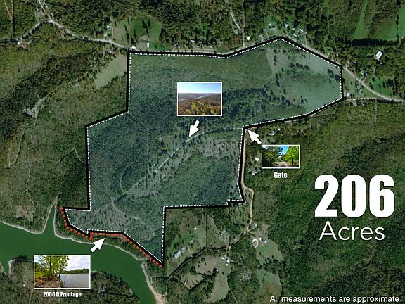 206 Lakefront Acres m/l with Big Views! 80 acres in pasture, fenced & cross-fencing with water, old hunting cabin, many 4 wheeler trails and road to waters edge. Over a mile of paved highway & county road frontage & 2,000 ft of lake frontage. Public water close by. Surveyed for lots but not recorded. 20 minutes to Branson. Very special parcel!