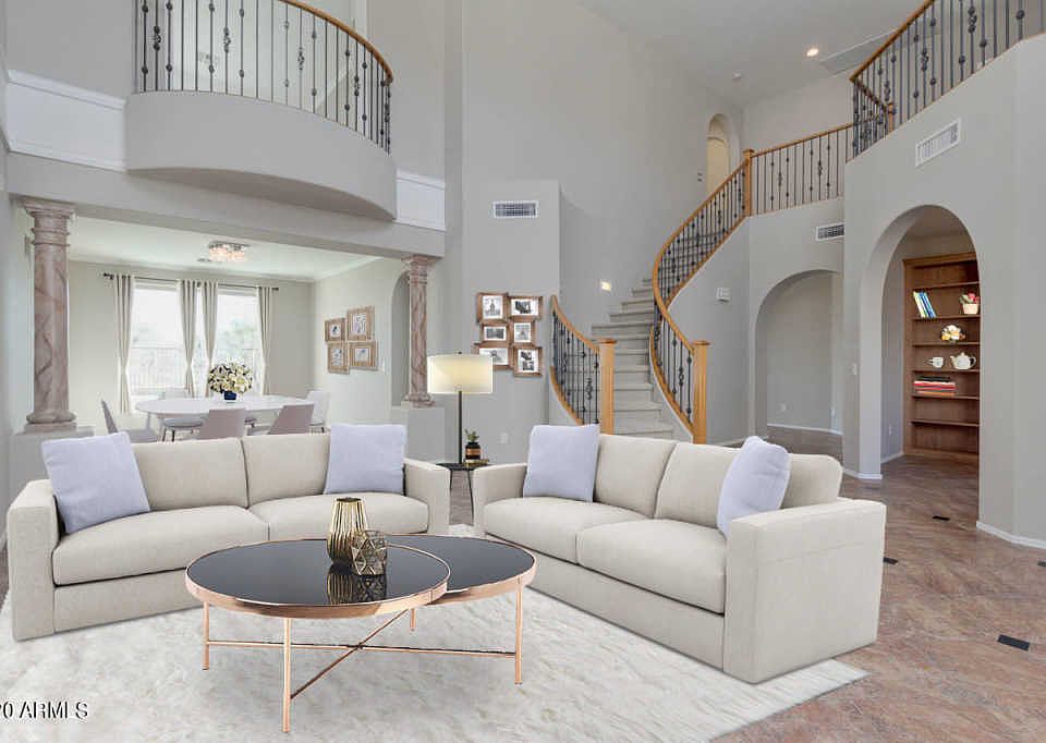 Impressive two-story home in prestigious Foothills can be yours! This incredible property gives you 3 car garage, balcony overlooking desert & mountains, & brand new turf. Fantastic interior provides 5 bed, 4.5 bath, beautiful staircase, bright living/dining room, gorgeous marble pillars, & fireplace ideal for this winter. Additional master downstairs perfect for guests Impeccable eat-in kitchen is a dream come true for any home chef. Offering high-end appliances, new Gas Stove w/grill on top, recessed lighting, island w/ breakfast bar, & more. Delightful master suite includes a private exit, sitting room w/French doors leading to small balcony, and luxurious bathroom with step-in shower, separate tub, and walk-in closet. new paint inside and out including ceilings and doors; (more) 2 built-in home offices great for at home schooling and the parent who is working from home, new carpet in master and guest bedrooms; Beautiful crown molding, new windows & window coverings, 2 bedrooms upstairs share a Jack & Jill bath, 4th upstairs bedroom has full bath w/double sinks, Hot water heater new 2018, Pebble tec, tile & deck on pool upgraded 2020, multi-color light installed in the pool. Enjoy the Central vacuuming. And Pre-wire for surround sound inside & out, Incredible, grassy backyard with covered patio and refreshing pool is ready for entertainers. yard watering system front and back, New Epoxied garage floor. This home will take your breath away