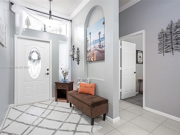 GORGEOUS ONE STORY HOME WITH FOUR BEDROOMS & TWO BATHROOMS IN THE MANNED GUARD GATED COMMUNITY OF PEMBROKE SHORES! THIS HOME FEATURES TILE FLOORING IN THE MAIN LIVING AREAS, CROWN MOLDING & VOLUME CEILINGS. THE UPGRADED KITCHEN IS COMPLETE WITH GRANITE COUNTERTOPS, WOOD CABINETRY & STAINLESS STEEL APPLIANCES. SPACIOUS BACKYARD WITH A LARGE GRASSY AREA AND MANGO TREES, PLENTY OF ROOM TO BUILD A POOL! THIS HOME IS PROTECTED BY SECURITY CAMERAS.
