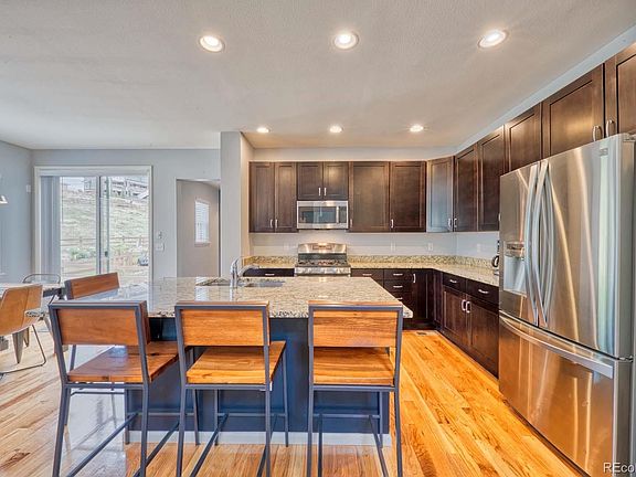 Located in the desirable neighborhood of Candelas with parks, trails, community centers and swimming pools all included in your real estate taxes! This south facing home has abundant windows and backs to a wide section of green belt open space. With 4 bedrooms, 4 baths, plus main floor study, this home is sure to please! Hardwood floors grace the main with its open floor plan concept. The kitchen is well appointed with a large breakfast bar, granite countertops, stainless steel appliances, 42" espresso cabinets, gas range and a huge walk-in pantry. The dining area flows nicely onto the patio for indoor/outdoor eating and entertaining. The main floor also includes a powder bath and a mudroom off the oversized 2 car garage. Upstairs you will find 3 good sized bedrooms, two bathrooms, and convenient upper level laundry. The master boasts luxurious master bath with oversized shower, modern tile and large walk-in closet. Professionally finished full basement includes a large family room with wet bar and wine refrigerator, Cortec flooring, recessed lighting, bedroom, full bath and a play room under the stairs! Surround sound system by Sonos included - located on the main level, patio and basement. Radon mitigation system and humidifier installed. Pre-wired for security system. Solar panels installed by builder when home was constructed. Enjoy the lifestyle with lots of activities, new restaurants, bars, and more coming into the area. Close to Golden, Boulder and Olde Town Arvada and a straight shot to the mountains with access to miles of hiking and biking trails.