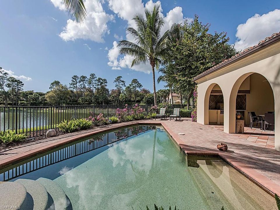 H.11399 - Inspirational living with alluring lakeside vistas & a poolside terrace seamlessly draw beauty into the interior. A sophisticated blend of modern comfort, design & Tuscan architecture define this sumptuous villa residence with 3 bedrooms, study & 3.5 baths. The finest quality finishes were employed in the recent 2013 renovation highlighted with hand scraped hardwood floors, Carrera marble counters & Italian pendant light fixtures. The new chef's kitchen is replete with Wolf gas cook-top, marble topped island/breakfast bar, butler's pantry & coffee bar. Nearby a 300 bottle Subzero climate controlled wine refrigerator is perfectly sited by the center sculpture garden courtyard for entertaining. Adjoining the kitchen thru a wide arched gallery, the formal dining area flows to the lofty beamed Great Room highlighted by a linear gas fireplace. Comfort and fluidity of modern design is defined in the serene master suite with captivating spa bath & enviable master wardrobe. Two bedroom suites one an attached Casita with private entry provides luxurious accommodations.