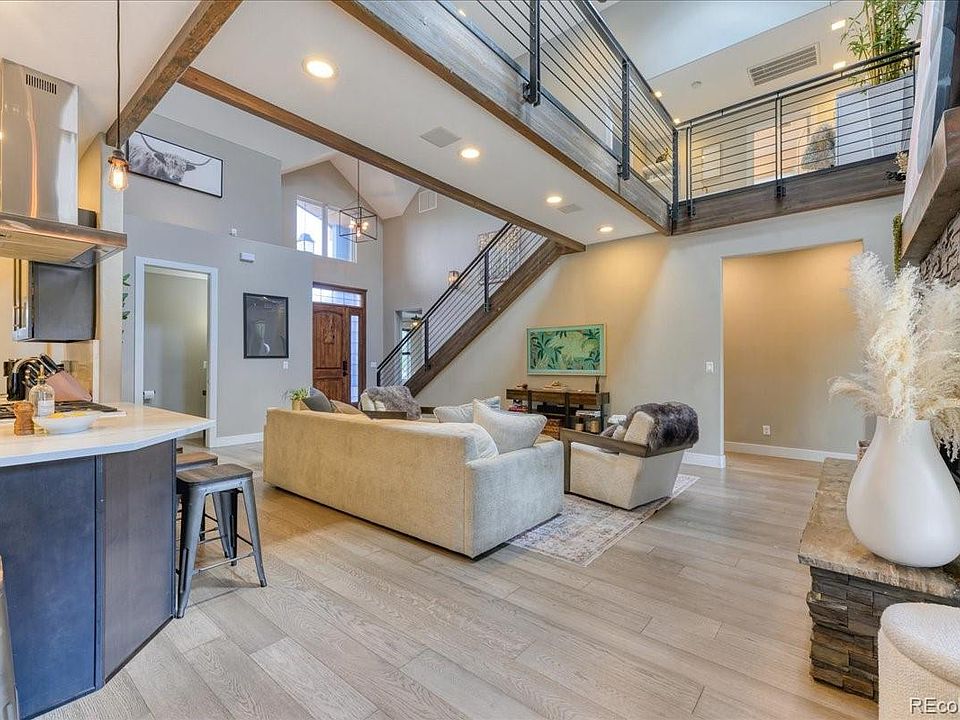 Welcome to this stunning custom-built home in Mesa View Estates. This exclusive craftsman build sits on a spacious angled lot features a sparkling pool, a beautifully crafted pergola, and a captivating grotto with a waterfall. Upon entering, you're greeted by an expansive great room with a stunning double-sided stone fireplace that opens to the outdoor living area. This home is enhanced with premium lighting, including Jellyfish exterior lighting that highlights the front gables holidays and creates custom ambient moods on the incredible back patio. Inside the custom details are abundant; the living room, kitchen and upstairs primary suite feature smart recessed lighting with full spectrum colors, preprogrammed ambient modes, and Alexa /Google Home integration. The casual dining room flows seamlessly into the fully upgraded kitchen, boasting quartz countertops, custom cabinetry with glass-front panels, a gas cooktop, range hood, double wall ovens, and a double-door wine fridge. The main floor hosts a primary suite with a full bath, pebble-stone walk-in shower, and oval soaking tub. Two additional bedrooms (one used as an office) plus a 3/4 bath and a powder room complete this level. A laundry area connects to the 4-car attached garage. Upstairs, discover two distinct areas. One side features a lavish primary retreat with a five-piece bathroom, dual closets, and a private deck overlooking the backyard. The other includes another bedroom with a full bath. The remarkable basement includes a large bedroom, spacious walk-through closet, and a full guest bath. It offers ample space for entertainment and relaxation, complete with additional kitchenette and a hidden speakeasy room. This luxurious build is truly one of a kind in the neighborhood. The property provides easy access to highways, light rail, dining, shopping, and entertainment in both Golden and Denver. It’s just steps to Green Mountain trailhead, Kyffin Elementary, community pool, park, and tennis courts.