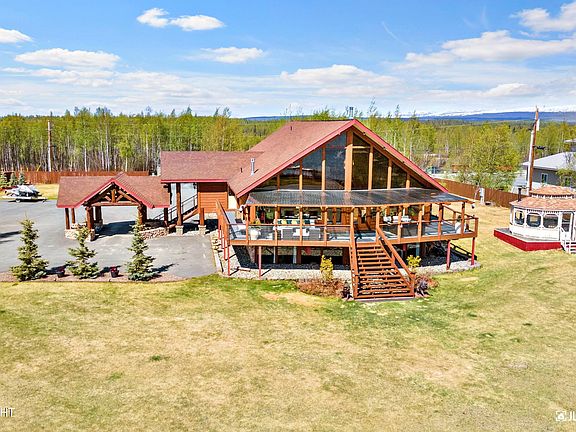 Once in a lifetime opportunity to own one of the most desirable luxury homes Big Lake has to offer. With 250 ft. of sundrenched SW facing lake frontage and unobstructed panoramic views you'll never want to leave. The main house boasts floor to ceiling windows, large covered log deck w/ dining area and sunny lounge space. 6 beds/ 6 baths, 3 masters w/ ensuites, main level office/ theatre room w/projector, rock fireplace and vaulted ceilings throughout. Spacious high end kitchen w/ SS Viking appliances, wine fridge, cherry cabinetry and granite countertops. MIL apartment w/ full kitchen, game room/ living area and ample storage. 1 bed/ 1 bath guest cabin w/ kitchenette, living area and deck. Enjoy dinner in the beautiful outdoor pavilion equipped w/ a BBQ kitchen area, bar and Trex decking. Watch the kids on the swing set and play a game of life size chess before cozying up at the patio firepit. Fully fenced and gated 2.12 acres w/ more parking and storage than you could dream of. Private paved boat launch and grass as far as your eye can see. An entertainer's dream, the perfect Air B&B, multi-generational gathering spot or full-time residence. Welcome!